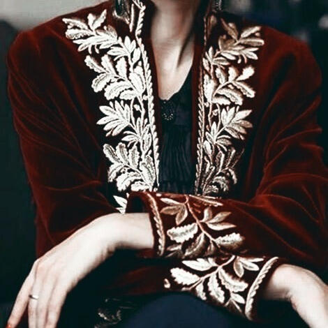 She's slightly above average height, standing at five feet and six inches. Her build is soft, thick and curvy in an hourglass shape. By appearance alone it is clear she's not a fighter. Her garb consists of a silk, dark red coat embroidered with gold, a white tunic, trousers, and her lute.